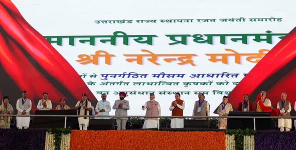 उत्तराखंड राज्य स्थापना के रजत जयंती वर्ष समारोह के अवसर पर प्रधानमंत्री श्री नरेंद्र मोदी ने आज लगभग ₹8260.72 करोड़ की विभिन्न विकास योजनाओं का लोकार्पण और शिलान्यास किया। इस दौरान प्रधानमंत्री ने प्रदेश को विकास की नई ऊँचाइयों पर ले जाने की प्रतिबद्धता दोहराई और उत्तराखंड के समग्र उत्थान का संकल्प व्यक्त किया।